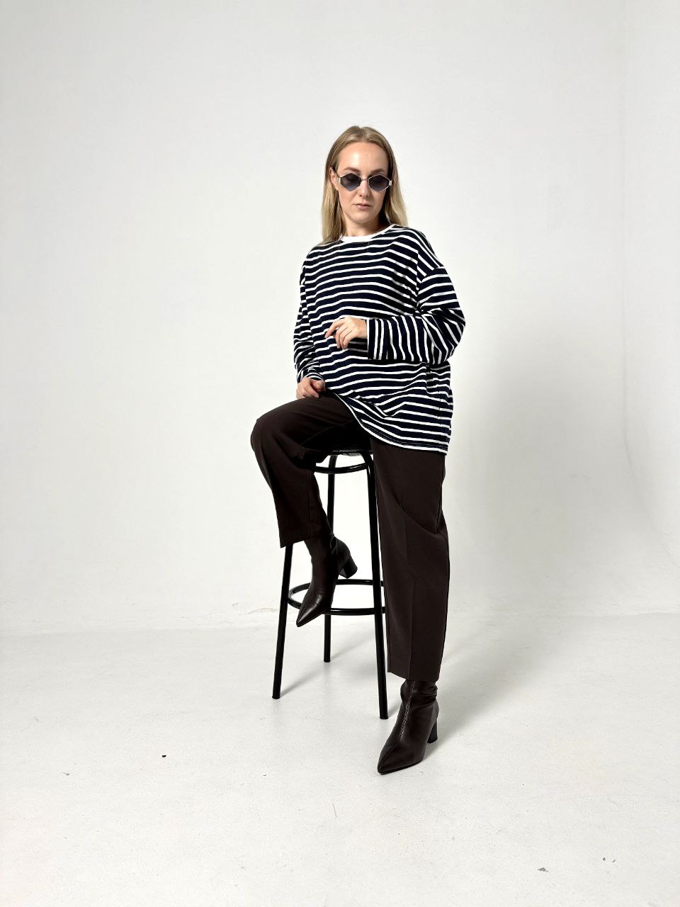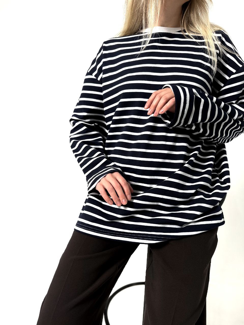 Расслабленный оверсайз крой и узнаваемая полоска создают идеальный баланс между небрежной элегантностью и яркой индивидуальностью.