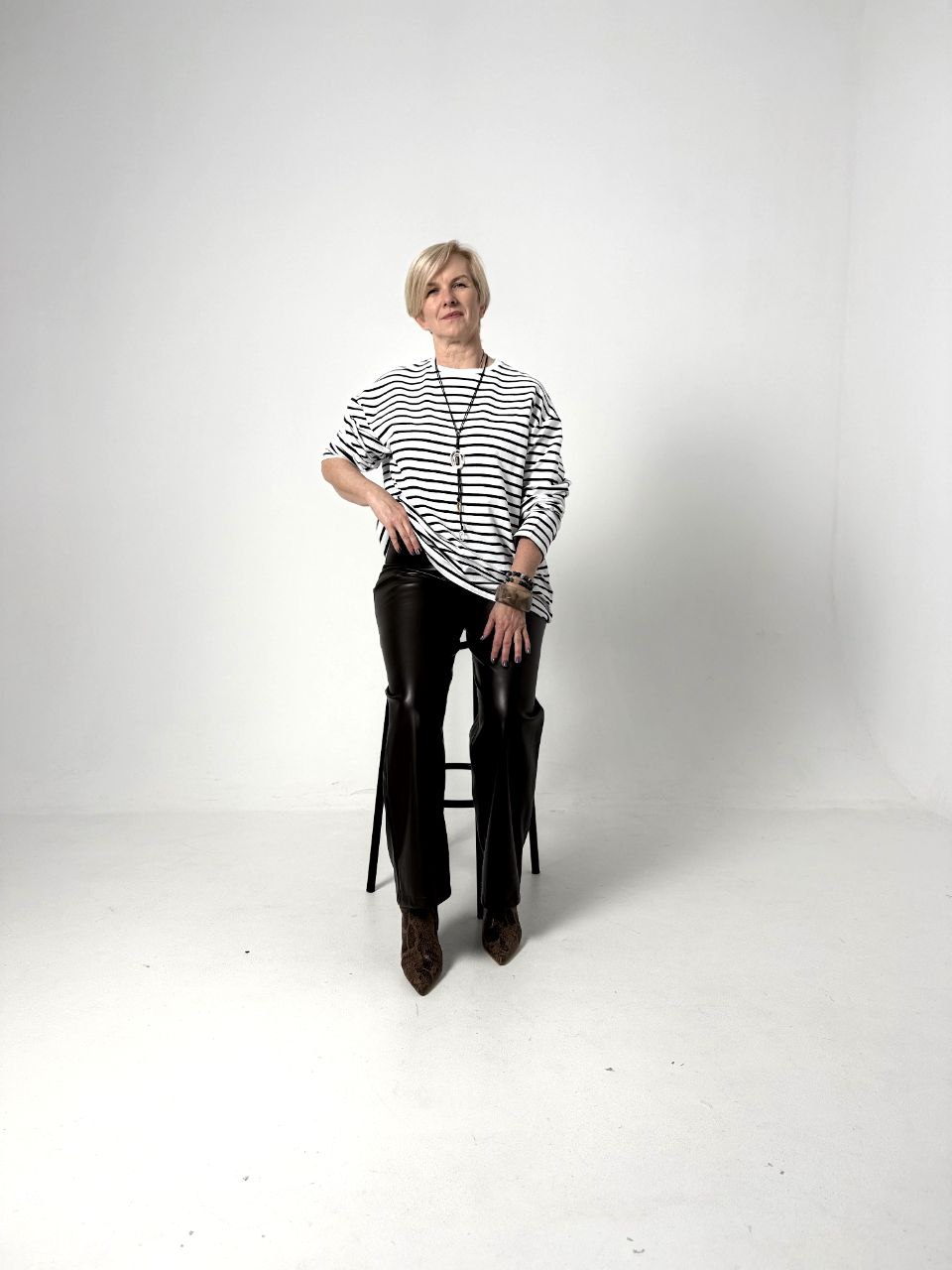 Расслабленный оверсайз крой и узнаваемая полоска создают идеальный баланс между небрежной элегантностью и яркой индивидуальностью